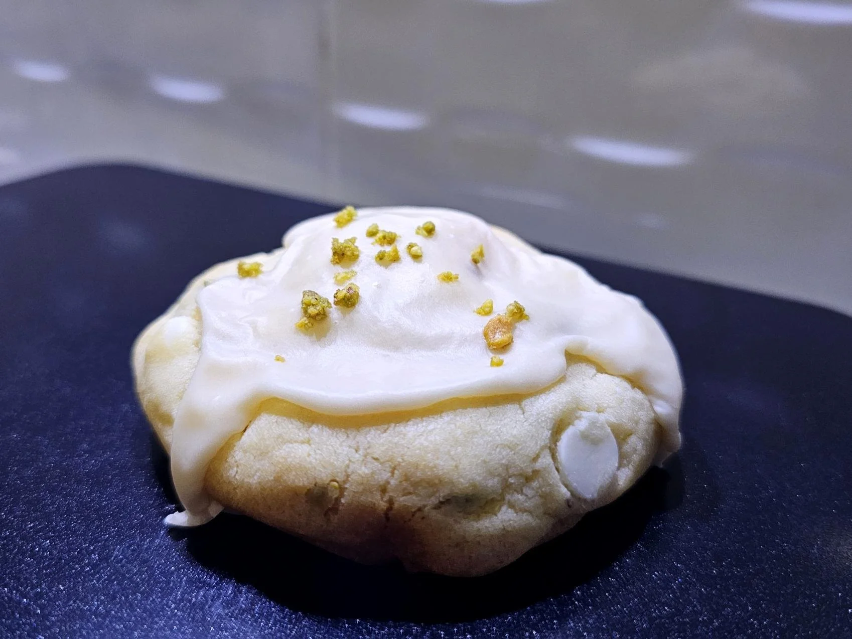 Pistachio. Where could you go wrong? A subtle vanilla cream cookie with pistachios and white chocolate throughout with the perfect packed green pistachio centre.